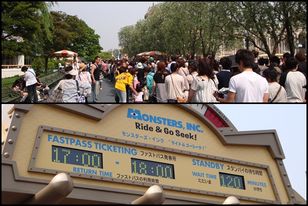 (写真・上) ファストパスには、やっぱり長蛇の列が・・・