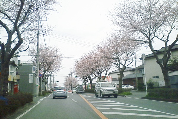 )桜が散って道路上を舞っていました