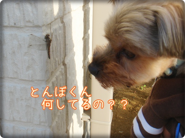 かい兄ちゃんカマキリは苦手ですがとんぼくんは平気なようです