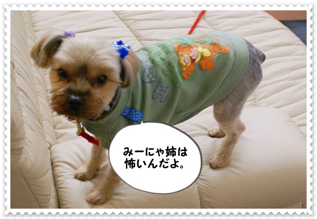 いつも通り、吠えて絡んでは、みーにゃに嫌な顔されてます。
