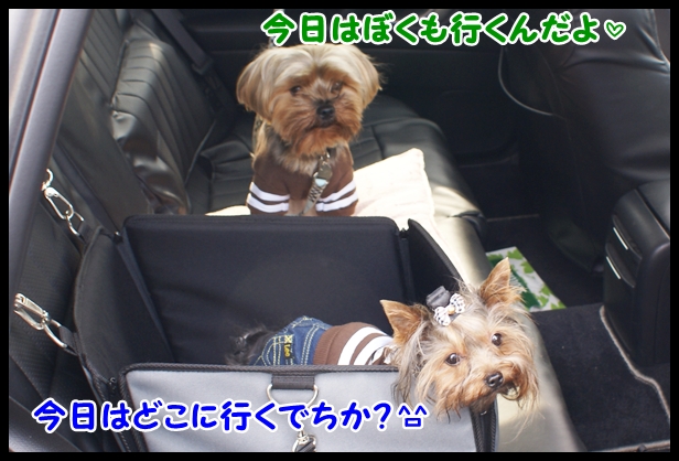 帰りの車の中では疲れてぐっすりのカイとソラ。上手に挨拶できたソラにも、ワンワン鳴いてたカイにも