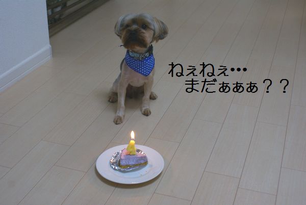 ロウソクの火にちょっとびびりつつも早くかぶりつきたいカイ兄ちゃんです