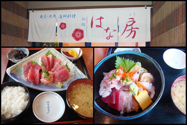 やっぱり海に来たらお魚ですよねぇ。マグロ定食(左)と海鮮丼(右)です。